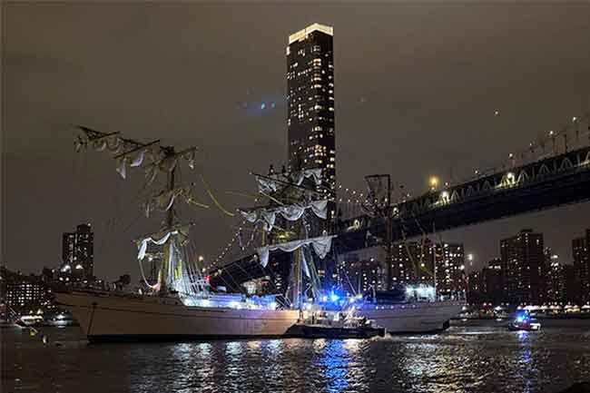 අමෙරිකා එක්සත් ජනපදයේ සංචාරයක නිරත වෙමින් තිබූ මෙක්සිකානු නාවික හමුදාවට අයත් දැවැන්ත පුහුණු නෞකාවක් නිව්යෝර්ක් නගරයේ බෘක්ලින් පාලමේ ගැටී තිබේ.