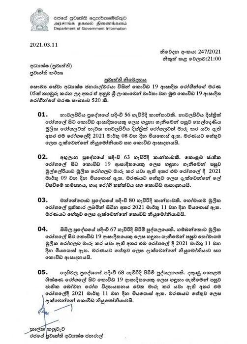 දැනට ශ්රී ලංකාව තුළ කොවිඩ්-19 නිසා සිදු වී ඇති මරණ සංඛ්යාව – 520