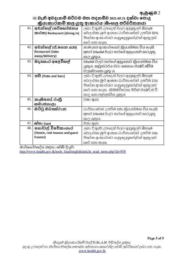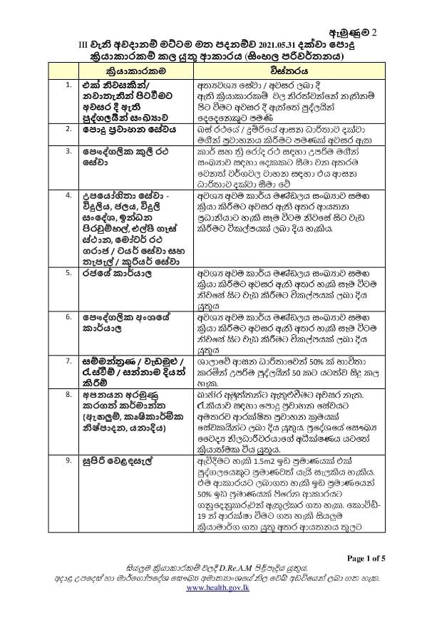 මේ අනුව කොරෝනා අසාදිතයින් වාර්තාවීම ඉහළ යාම හමුවේ ලබන මස 31 වැනි දා දක්වා බලපැවැත්වෙන පරිදි නව සෞඛ්‍ය මාර්ගෝපදේශ මාලාවක් රජය නිකුත් විසින් නිකුත් කළ තිබේ.