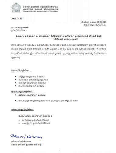 මේ අතර මාතලේ,කුරුණෑගල,මොණරාගල දිස්ත්රික්කවල ප්රදේශ කීපයක් හුදකලා කර ඇති බවට රජයේ ප්රවෘත්ති දෙපාර්තමේන්තුව නිවේදනයක් නිකුත් කරමින් සඳහන් කරයි.