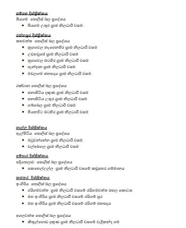 මේ අතර තවත් දිස්ත්‍රික්ක 07ක ග්‍රාම නිලධාරී වසම් කිහිපයක හුදකලා බව ද ඉවත් කර ති⁣බේ.