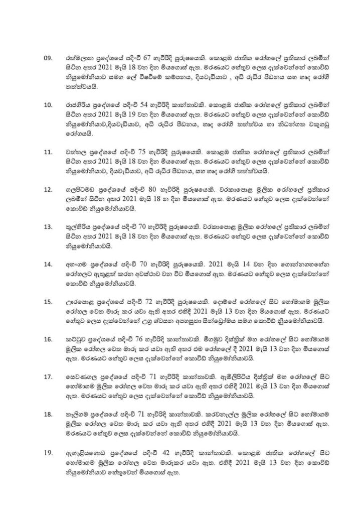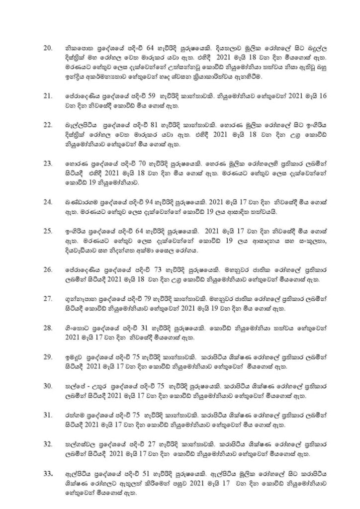 ඒ අනුව මෙරට සමස්ත කොවිඩ් -19 මරණ සංඛ්යාව 1051 ක් දක්වා ඉහළ ගියේ ය.