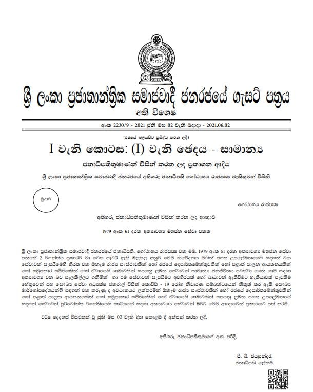අත්‍යවශ්‍ය සේවා ගැසට් නිවේදනය..