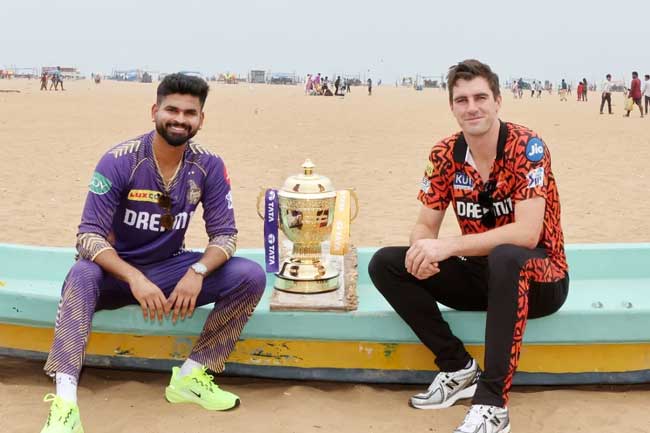 ඒ කොල්කටා නයිට් රයිඩර්ස් කණ්ඩායම සහ සන්රයිසස් හයිද්රාබාද් කණ්ඩායම අතරය.