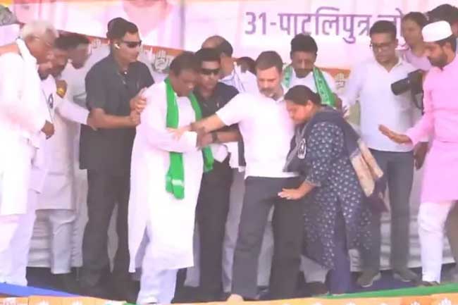ඉන්දීය කොංග්රස් පක්ෂයේ නායක රාහුල් ගාන්ධි එක්වූ රැලියක් අතරතුරදී වේදිකාවක් කඩාවැටී තිබේ.