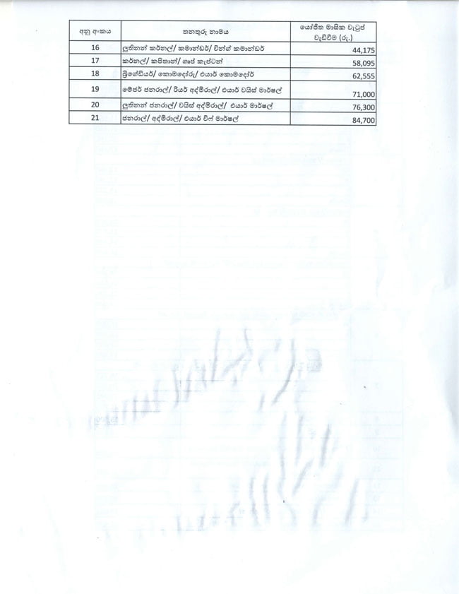 මේජර් ජනරාල් / රියර් අද්මිරාල් / එයාර් වයිස් මාර්ෂල් යන තනතුරු සඳහා වන මූලික වැටුප රුපියල් 71,000කින් ඉහළ නැංවේ.
