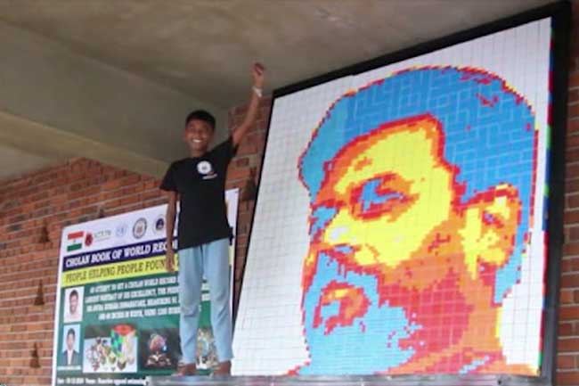 ඔහු රූබික් කියුබ් 1200ක් භාවිත කරමින් ජනාධිපතිවරයාගේ රුව නිර්මාණය කොට එලෙස ” චෝලන් ” ලෝක වාර්තාවක් තැබීමට සමත් විය.