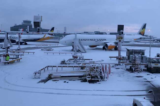 පවතින අධික හිමපතනය හේතුවෙන් එංගලන්තයේ ගුවන්තොටුපොළ රැසක් තාවකාලිකව වසාදමා තිබේ.