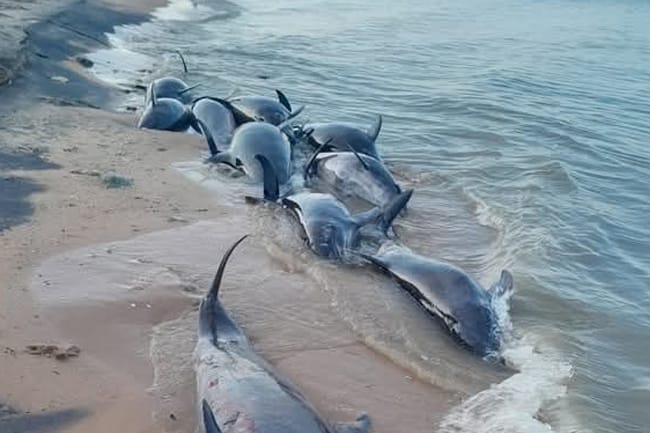 එහි මියගිය ඩොල්ෆින් මසුන් 11 දෙනෙකු සිට ඇති අතර මසුන්ගේ සිරුරු පරික්ෂා කිරීමෙන් පසු වෛද්‍යවරු අනුමාන කර ඇත්තේ මෙම සතුන් දැලක පැටලී මියගොස් වෙරළට ගොඩගසා ඇති බවටය.