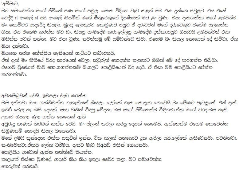 ඝාතනයට ලක් වූ තරැණීය “SI අංකල් ” යැයි පවසමින් තමා වෙත ලං වූ බවත් පසුව තමන් සමඟ උරන වී තම පවුලට හා ළමයින්ට බැන වැදුනු බවත් එහි සඳහන් වේ.